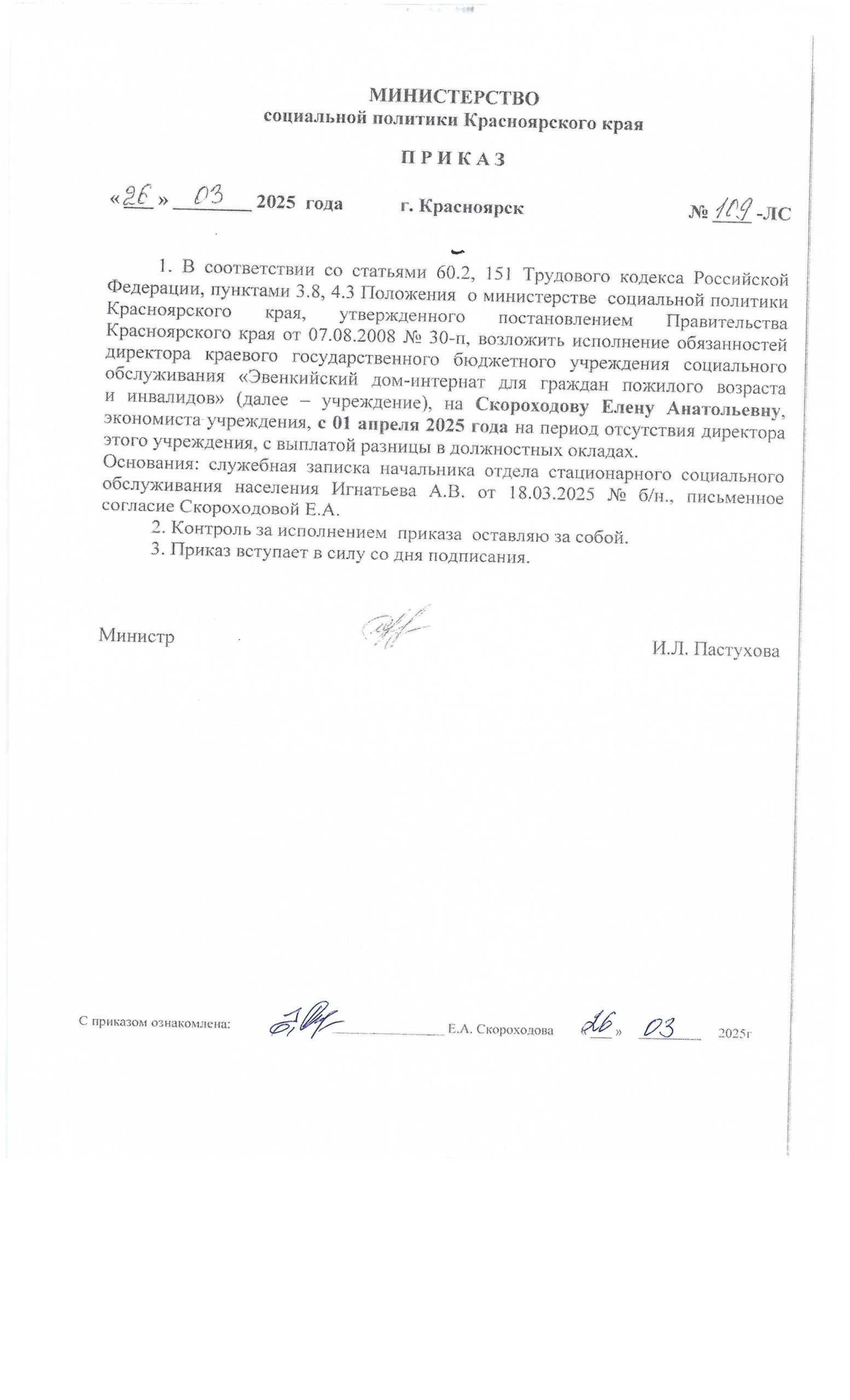 Посмотреть: Приказ №109 На возложение и.о.директора