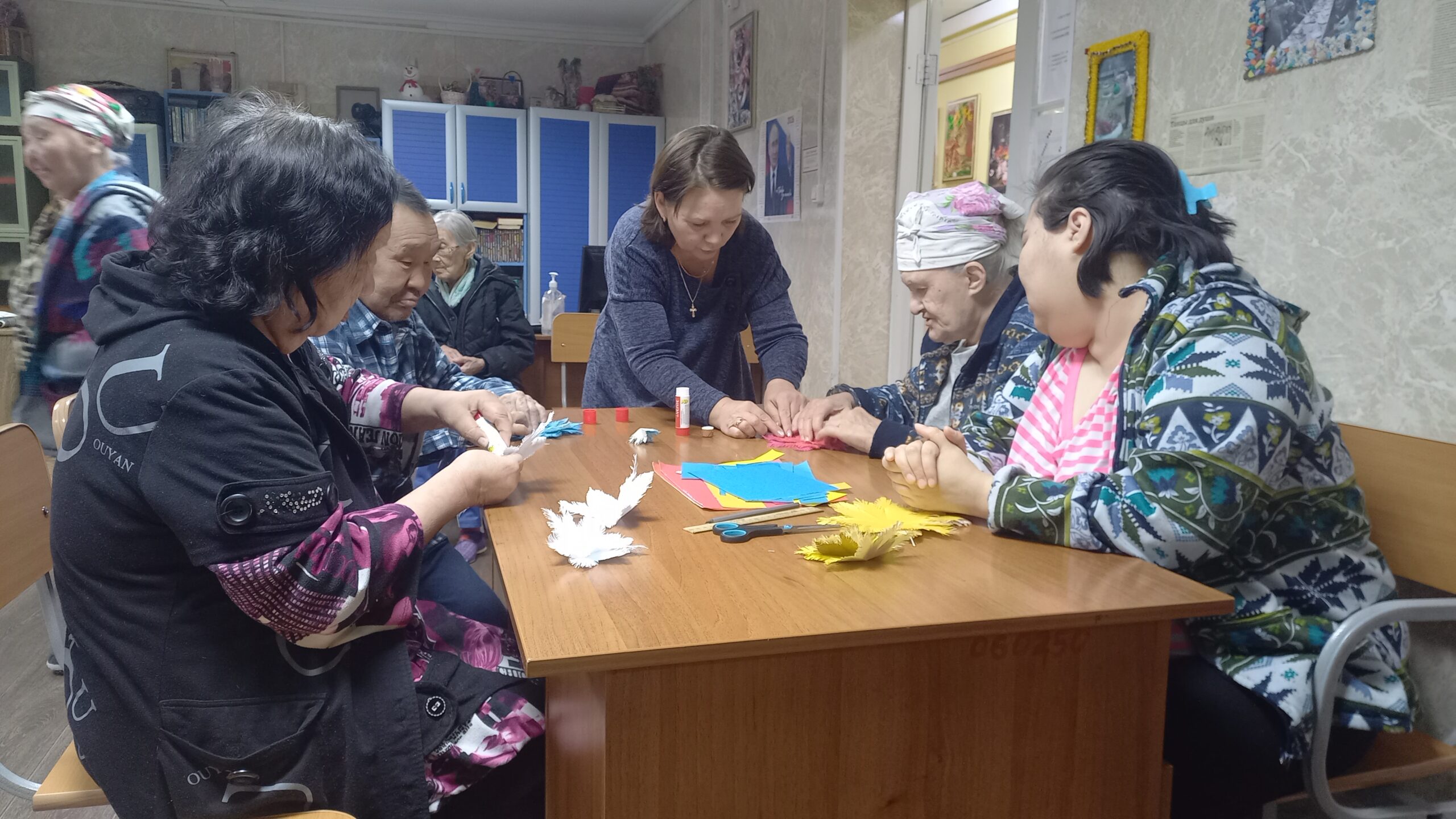 20 Января в «Пансионате «Эвенкийский» для получателей социальных услуг провели мастер класс «Зимние узоры». Целью было изготовить снежинки из бумаги. Задачей было научить вырезать снежинки из бумаги, развивать воображение, фантазию, творческие способности, эстетический вкус, трудолюбие.